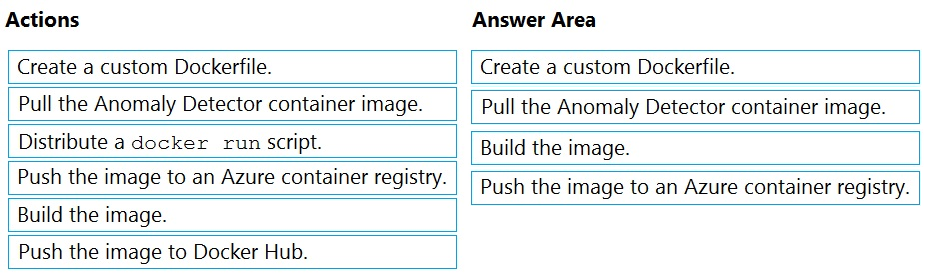 You plan to use containerized versions of the Anomaly Detector API on local devices for testing and in on-premises datacenters.