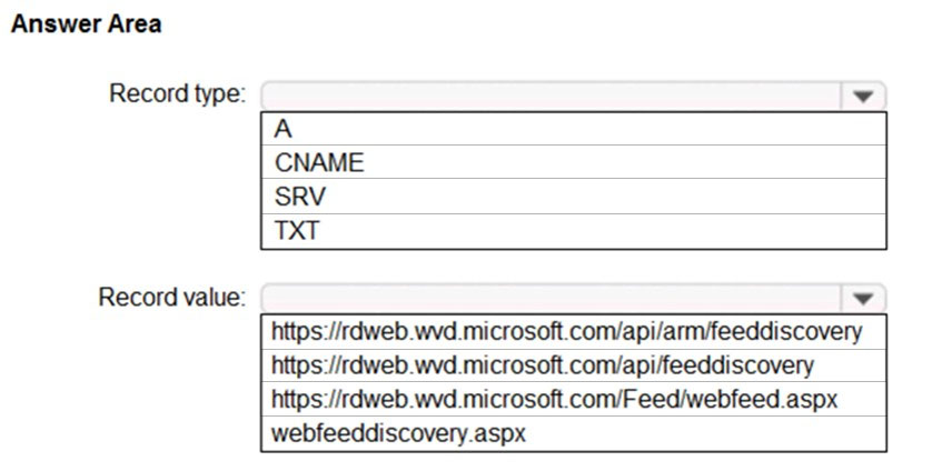 How should you configure the _msradc DNS record? To answer, select the appropriate options in the answer area.