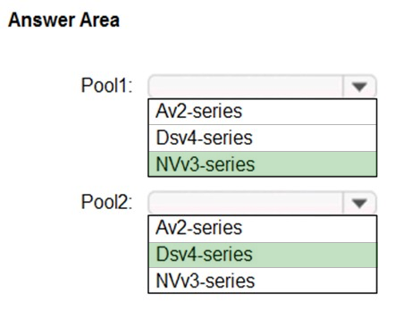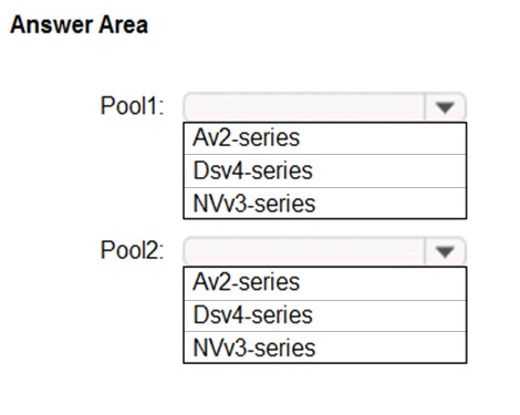 Which size should you recommend for each pool? To answer, select the appropriate options in the answer area.