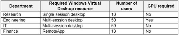 You plan to deploy Azure Virtual Desktop to meet the department requirements shown in the following table.