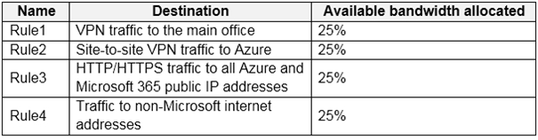 The routers in each branch office have the Quality of Service (QoS) rules shown in the following table.