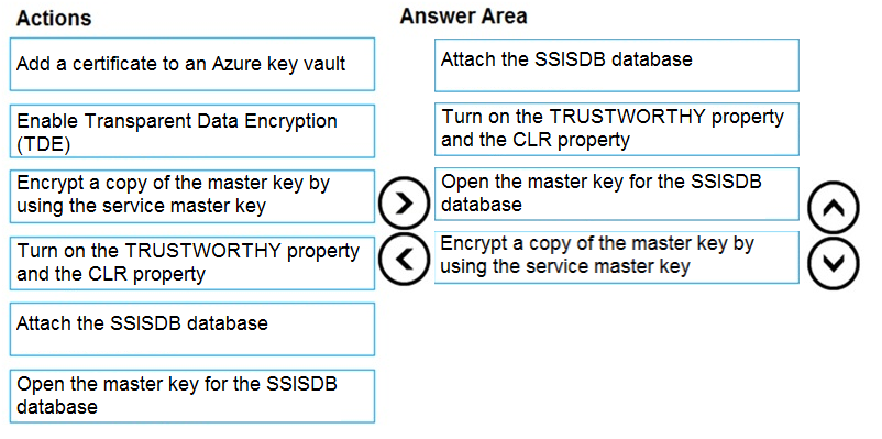 Which four actions should you perform in sequence to resolve the issue? To answer, move the appropriate actions from the list of actions to the answer area and arrange them in the correct.