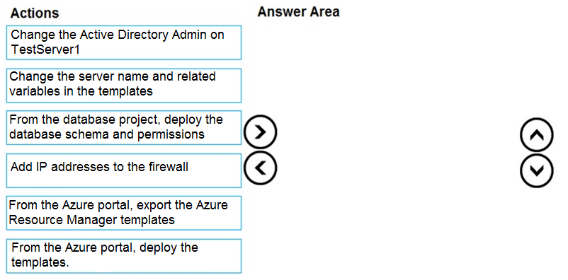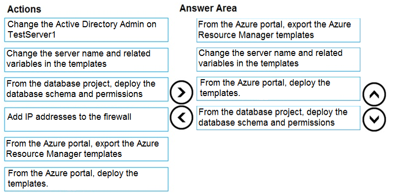 You need to populate a new resource group named App1Test with the DB1 database and an Azure SQL Server named TestServer1. The resources in App1Test must have the same configurations as the resources in App1Dev.