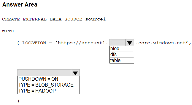 How should you complete the Transact-SQL statement? To answer, select the appropriate options in the answer area.