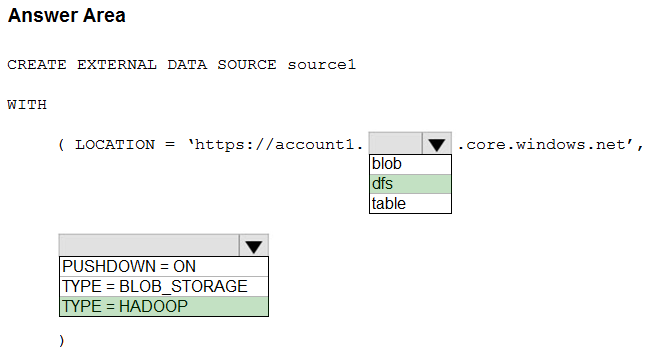 External data sources with TYPE=HADOOP are available only in dedicated SQL pools.