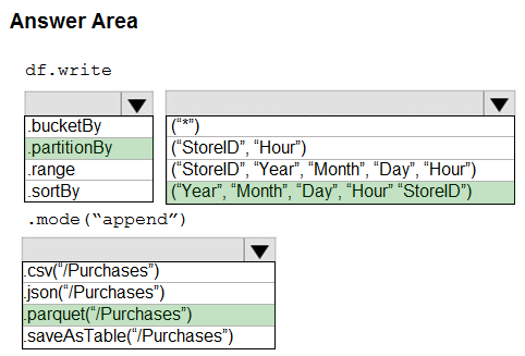 Box 2: ("Year","Month","Day","Hour","StoreID")