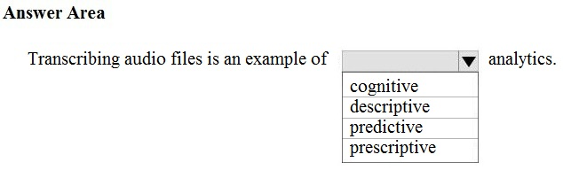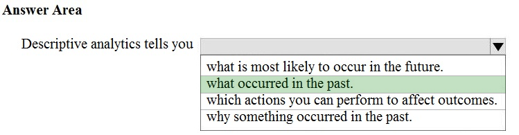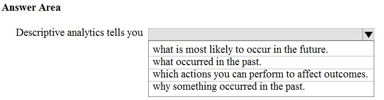 To answer, drag the appropriate analytics type from the column on the left to its question on the right. Each analytics type may be used once, more than once, or not at all.