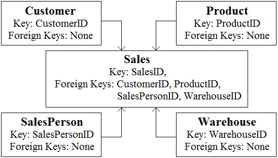 In computing, the star schema is the simplest style of data mart schema and is the approach most widely used to develop data warehouses and dimensional data marts. The star schema consists of one or more fact tables referencing any number of dimension tables. The star schema is an important special case of the snowflake schema, and is more effective for handling simpler queries.