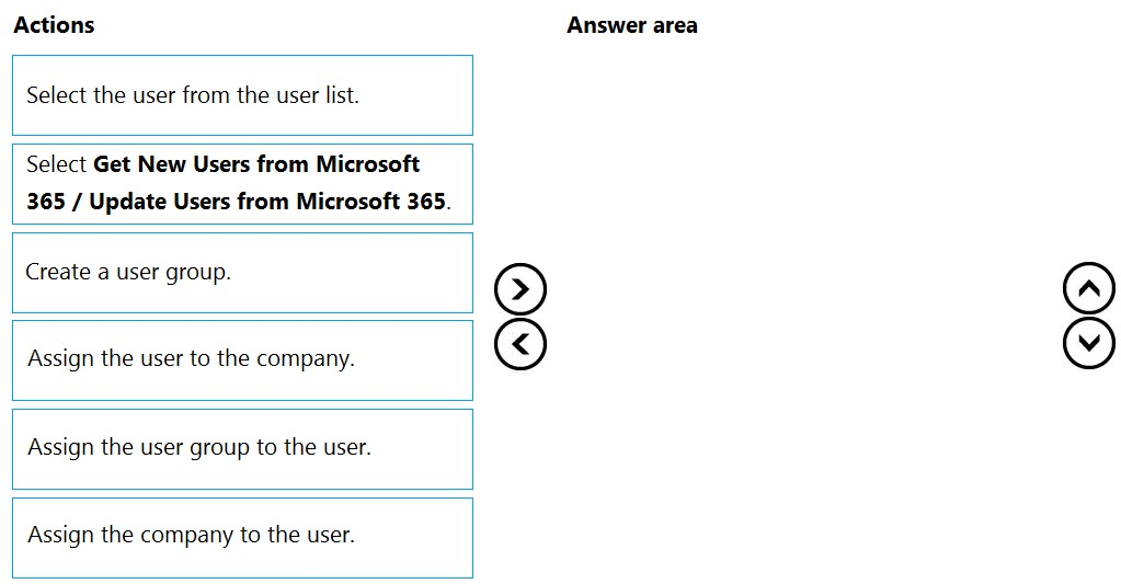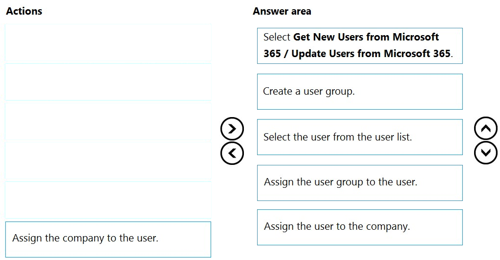 Which five actions should you perform in sequence? To answer, move the appropriate actions from the list of actions to the answer area and arrange them in the correct order.