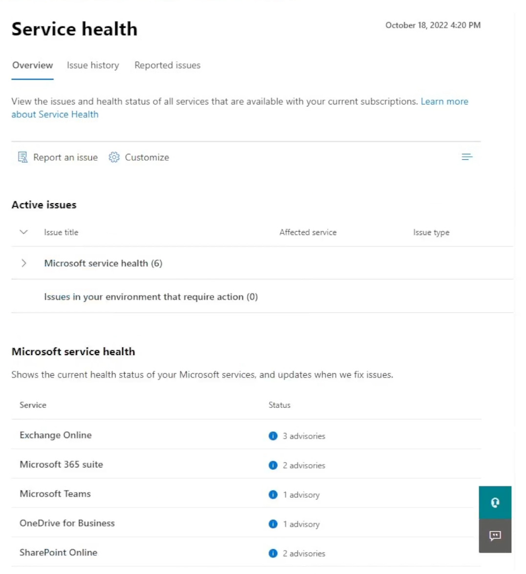 You view the Service health Overview as shown in the following exhibit.