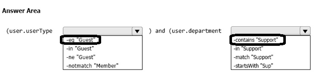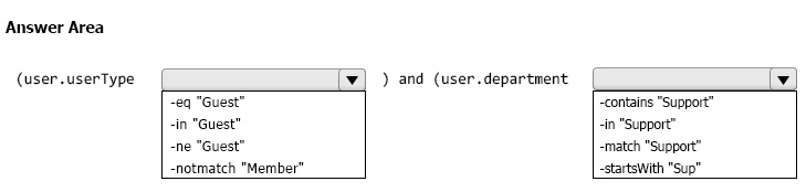 You need to configure a dynamic user group that will include the guest users in any department that contains the word Support.