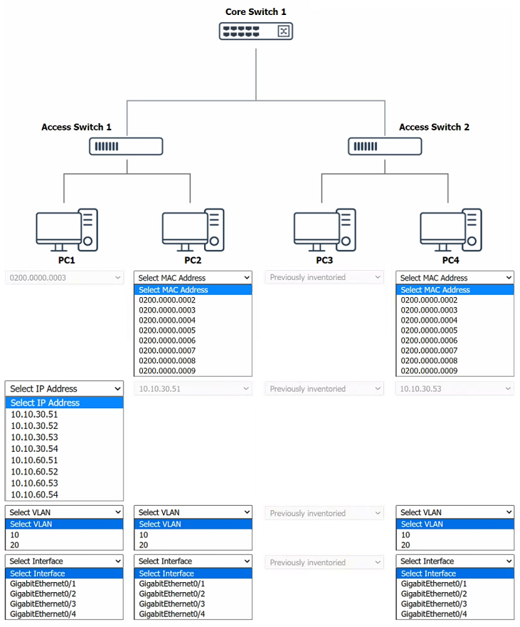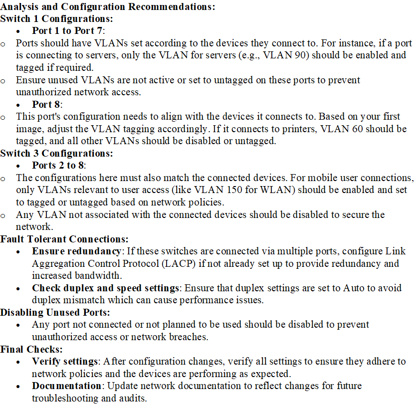 Click on the appropriate port(s) on Switch 1 and Switch 3 to verify or reconfigure the correct settings:
