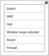Select the appropriate network device for each location. If applicable, click on the magnifying glass next to any device which may require configuration updates and make any necessary changes.