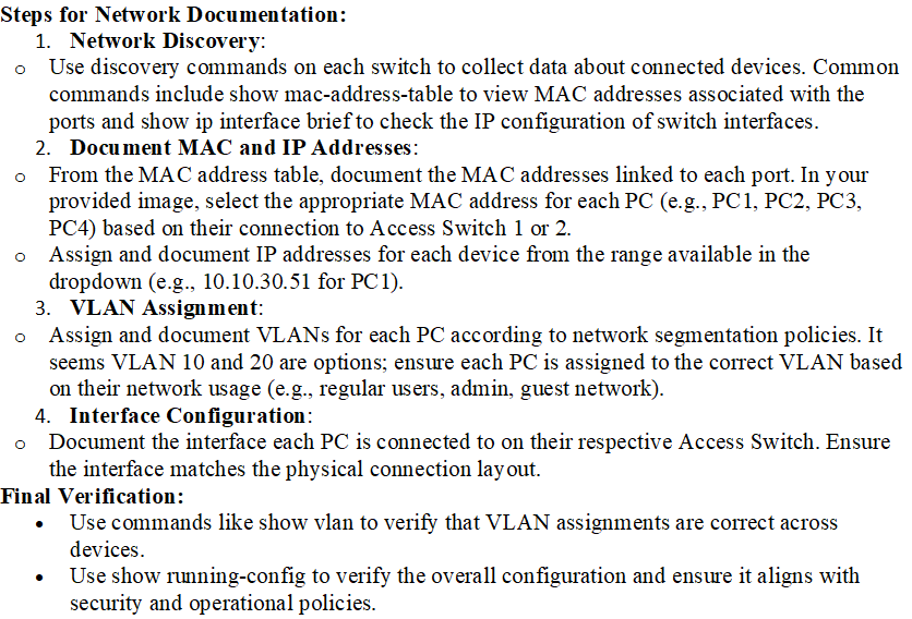 A network technician was recently onboarded to a company. A manager has tasked the technician with documenting the network and has provided the technician with partial information from previous documentation.