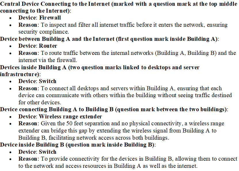 Devices in both buildings should be able to access the Internet.