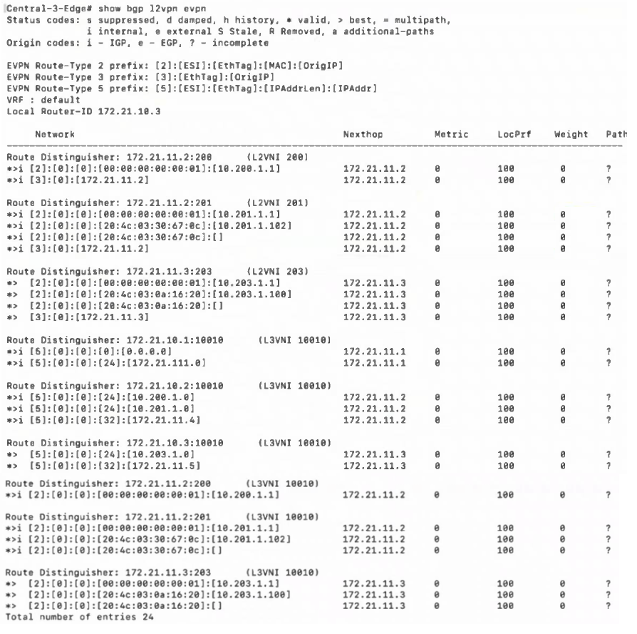 10.203.1.100 is mentioned in L2VNI 203 with nexthop 172.21.11.3