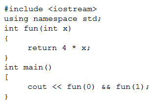 foo(0) && foo(1) would evaluate to 0 && 4 with 4 implicitly converted to 1 for a logical && operation. The result of 0 would output as int.