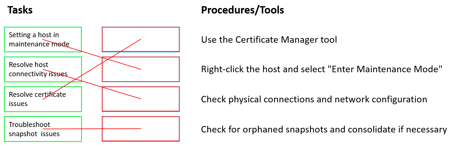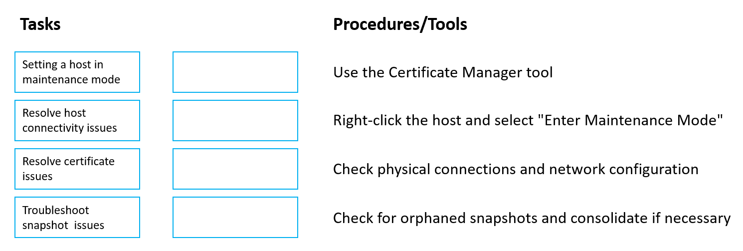 Match each troubleshooting task with its relevant procedure or tool.