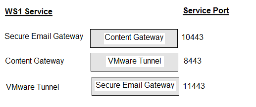 Match the Workspace ONE Service on the left to its Service Port on the right.