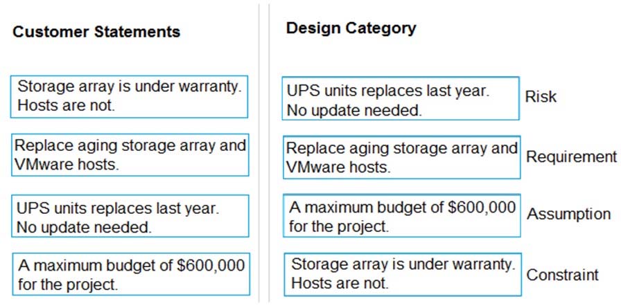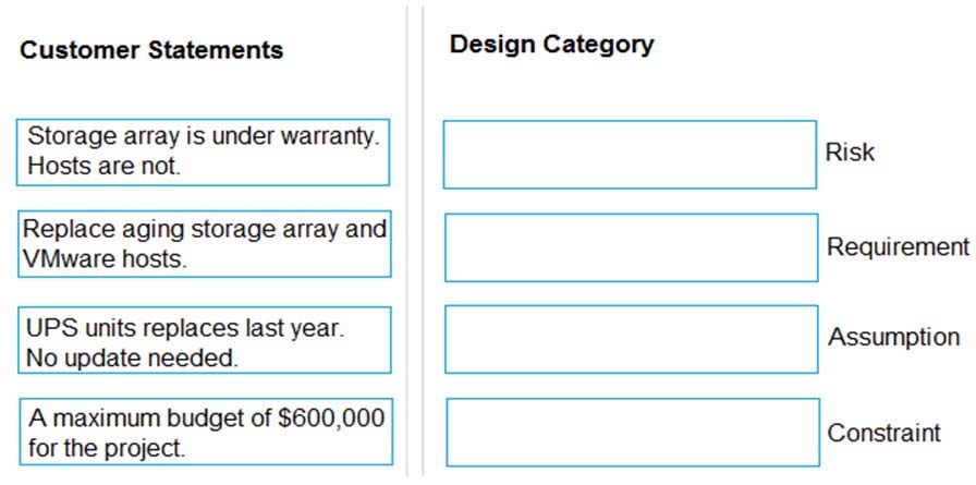 A customer has an aging storage array that must be replaced. The array is used by VMware hosts in their data center. The storage array is under warranty, but the hosts are all out of warranty. The customer wants new hardware running Horizon 7, and is open to a hyperconverged solution. The project must take place with minimal-to-no disruption during normal business hours. The CIO states there is a maximum budget of $600, 000 for the project. The IT Director says their