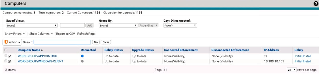 An administrator is troubleshooting App Control agent issues. When navigating to the Computer Details page, the administrator sees the following: