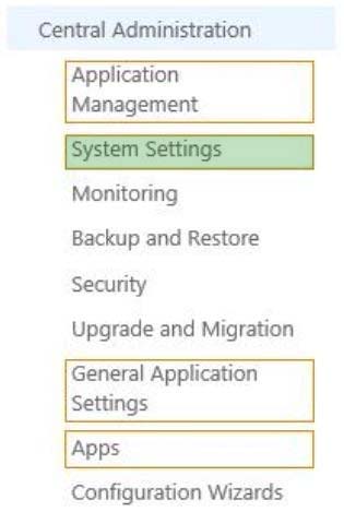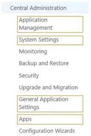 In Central Administration, on which page should you configure the settings? (To answer, select the appropriate page in the answer area.)