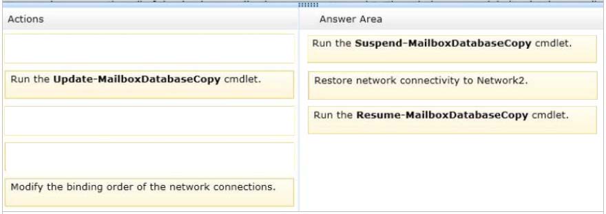 You have an Exchange Server 2013 database availability group (DAG). Each member of the DAG has two network interfaces named Network1 and Network2.