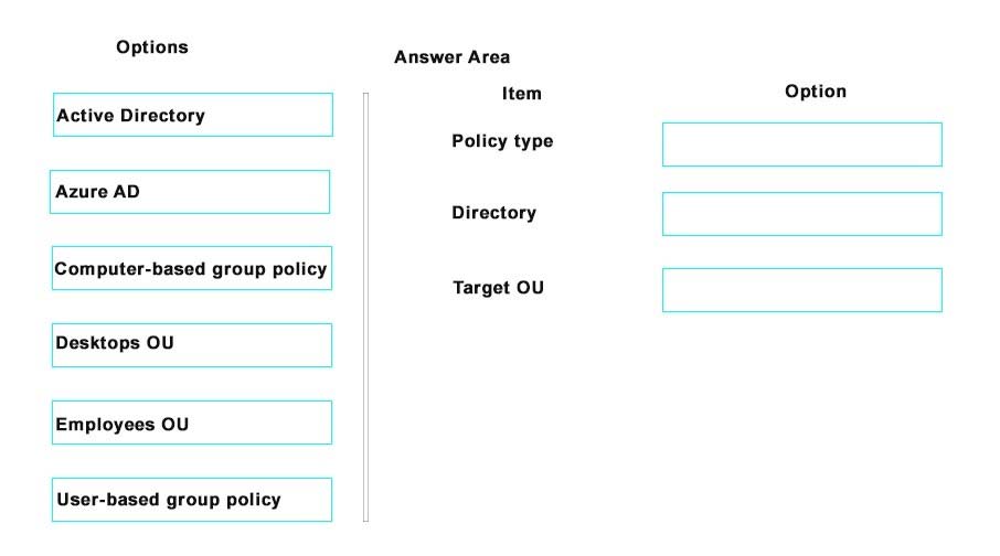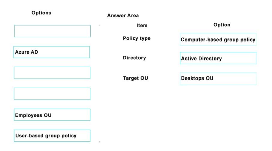 A company plans to upgrade all devices from Windows 7 to Windows 10. All Windows 10 devices belong to an organizational unit (OU) named Desktops. All devices for users in the sales department are enrolled in Azure Active Directory (AD). All users belong to an OU named Employees.