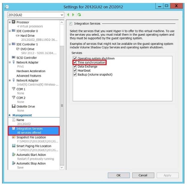 Backup (volume snapshot services. Thus you should disable the time synchronization using Integration Services.