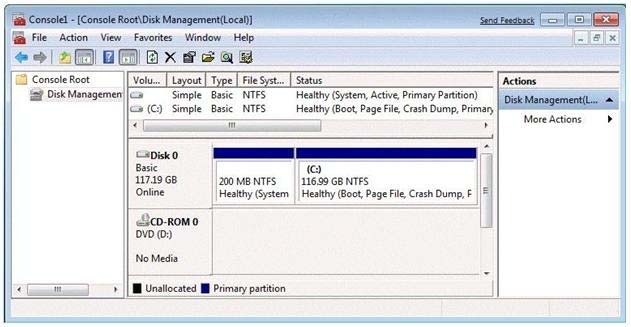 You have a computer that runs Windows 7. You open the Disk Management snap-in as shown in the exhibit. (Click the Exhibit button.)?
