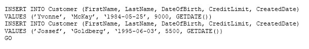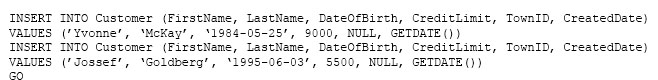 You must insert the following data into the Customer table: