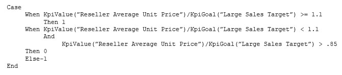 You must create a KPI named Large Sales Target that uses the Traffic Light indicator to display status. The KPI must contain:
