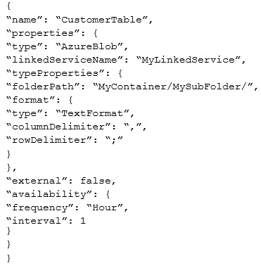 The dataset is being produced outside the scope of Azure Data Factory. The dataset is defined by using the following JSON code.