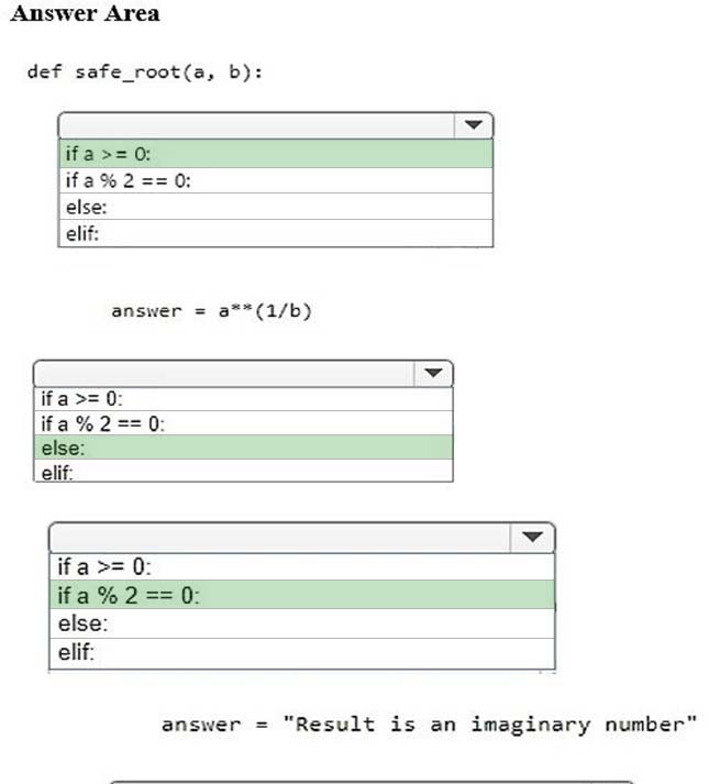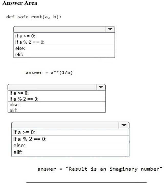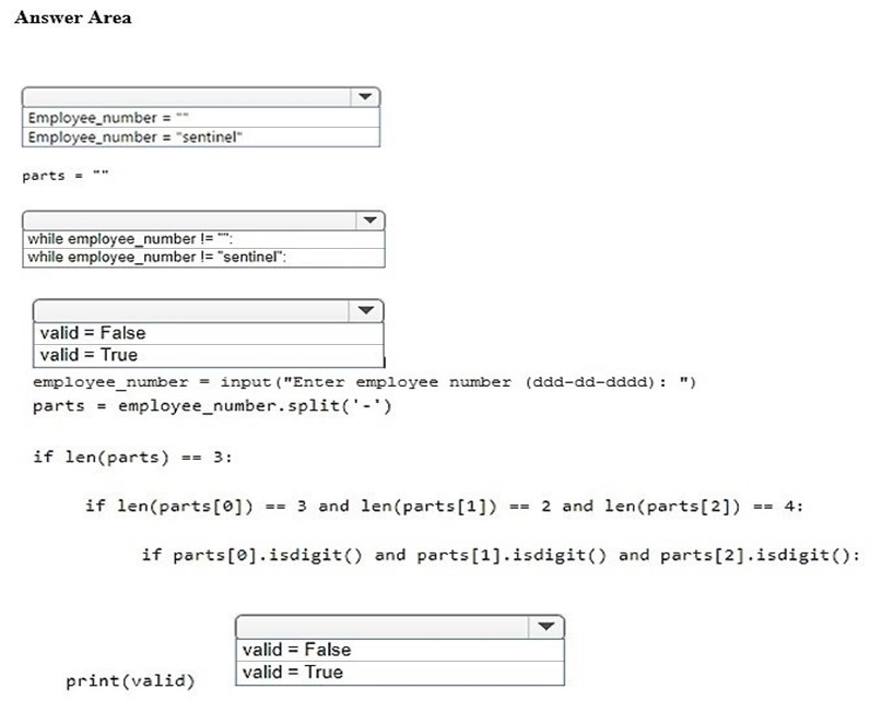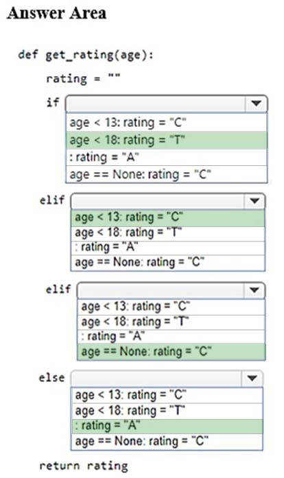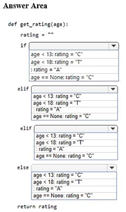 How should you complete the code? To answer, select the appropriate code segments in the answer area.