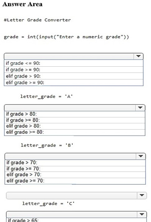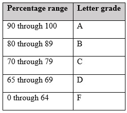 You are designing a decision structure to convert a student's numeric grade to a letter grade. The program must assign a letter grade as specified in the following table: