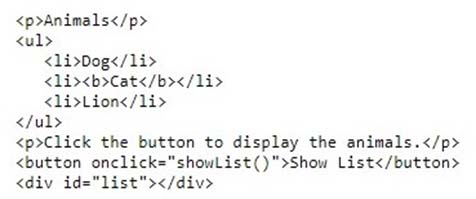 You need to create a function that will display the list of animals, including any formatting, in the div element.