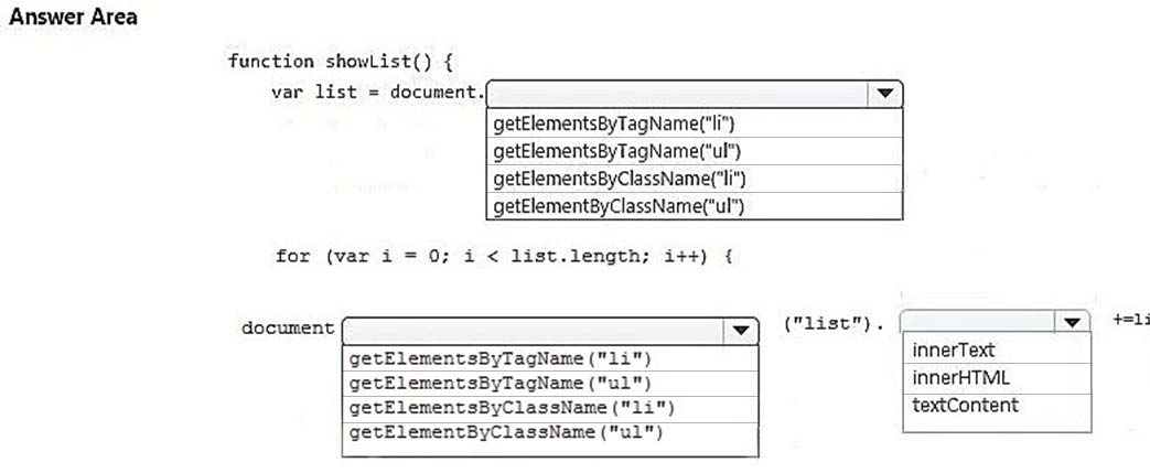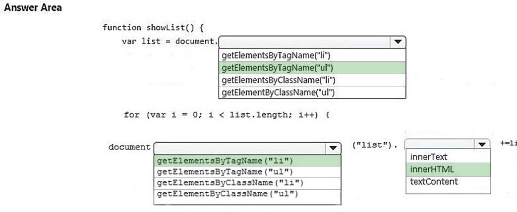 How should you complete the code? To answer, select the appropriate code segments in the answer area.