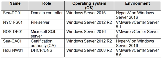 You have an on-premises network that contains a Hyper-V host named Host1. Host1 runs Windows Server 2016 and hosts 10 virtual machines that run Windows