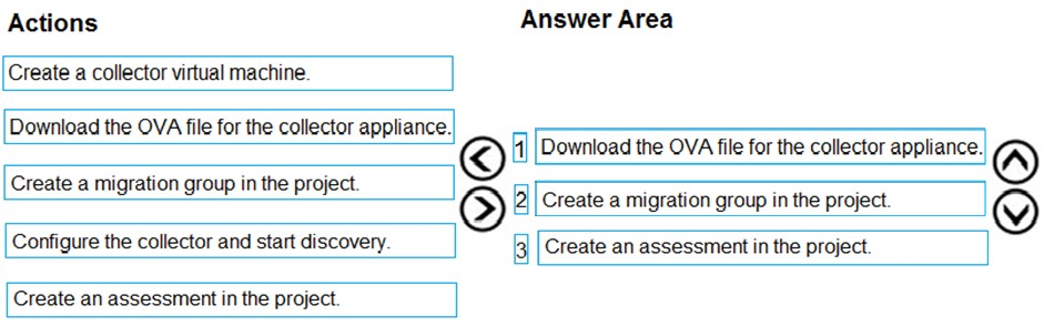 Which three actions should you perform in sequence? To answer, move the appropriate actions from the list of actions to the answer area and arrange them in the correct order.