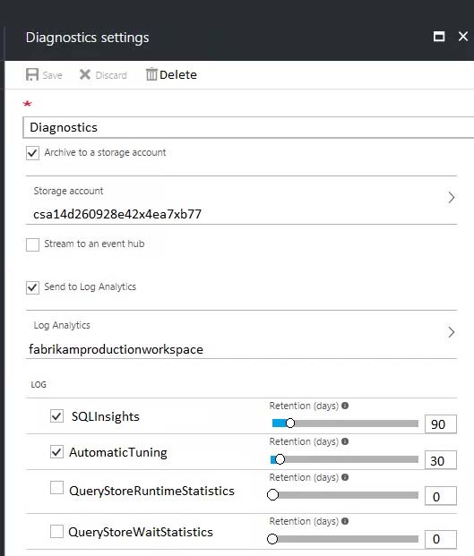 You plan to configure the Diagnostics settings on the databases as shown in the following exhibit.