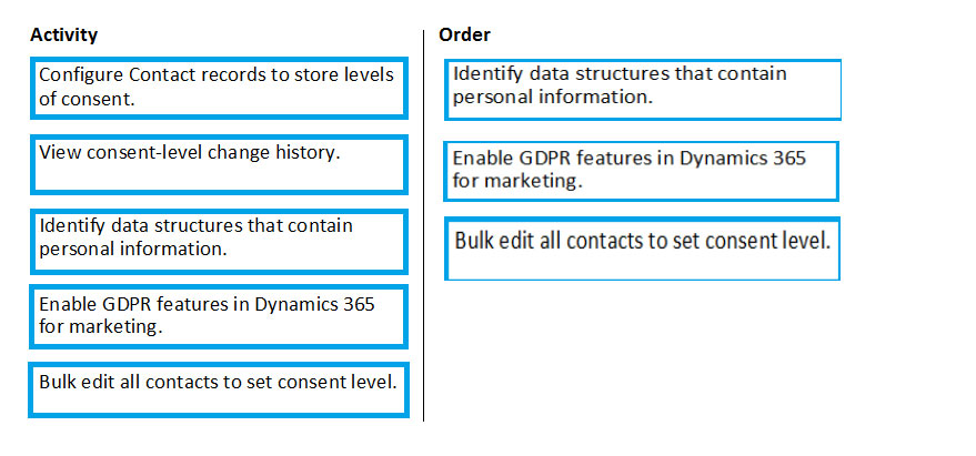 Which three activities should you perform in sequence? To answer, move the appropriate actions from the list of actions to the answer area and arrange them in the correct order.
