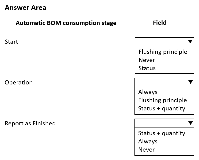 How should you configure manufacturing execution? To answer, select the appropriate option in the answer area.