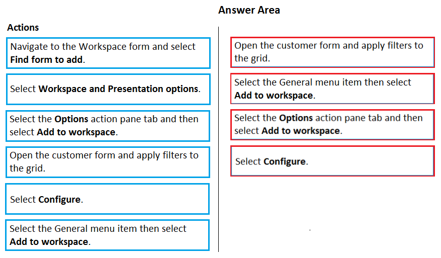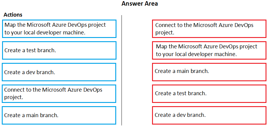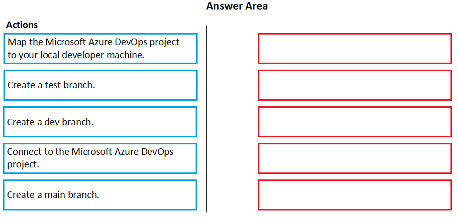 In which order should you perform the actions? To answer, move all actions from the list of actions to the answer area and arrange them in the correct order.