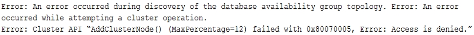 You attempt to add File02 as an alternate witness server, and you receive the following error messages: