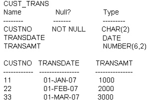 Here is the structure and data of the CUST_TRANS table: