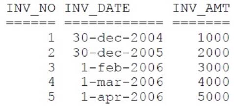 The following data has been inserted into the INV_HISTORY table: