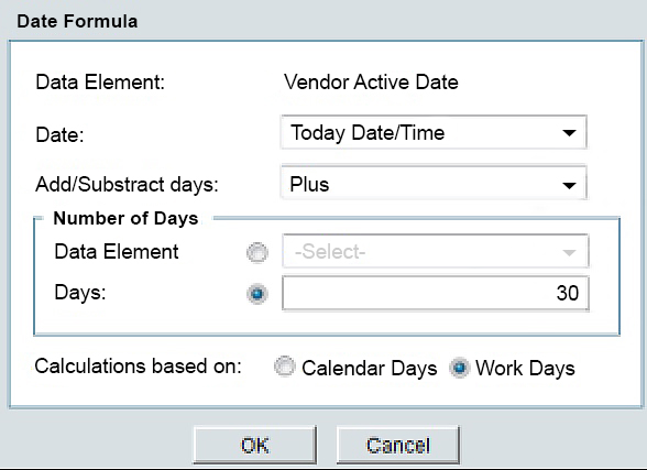 Which two statements about the date formula built on the Vendor Active Date field are true?