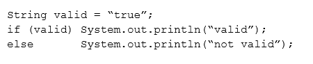 In segment 'if (valid)' valid must be of type boolean, but it is a string.