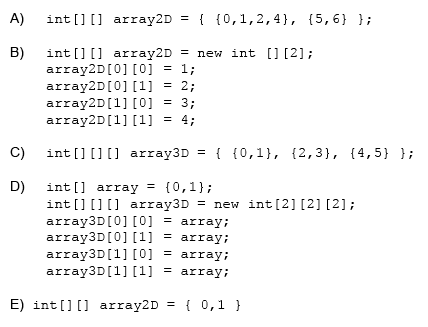Which two are valid instantiations and initializations of a multi dimensional array?