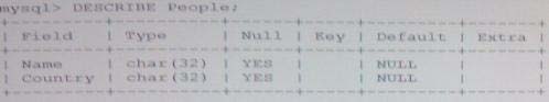 Which statement will load the first and last names into the Names column and the country into the country column?